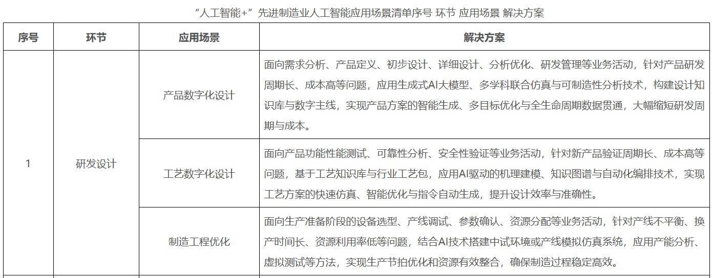 (五)人工智能赋能汽车制造。开展智能网联汽车“车路云一体化”应用试点,加大“智造+智驾”汽车全产业链AI赋能力度。协同设计方面,智能管理分类零部件资源,推荐最优件信息,结合人工智能算法,仿真自动匹配清理材料属性,实现高精度网格划分,提高企业研发效率。生产制造方面,智能统筹资源适配,优化配置制造资源、智慧管理供应链,推动企业闲置制造资源高效利用。检验检测方面,通过智能调度设备分发任务、检测解析数据、识别问题自动处理、智能管理数据回传,自动生成检测报告,提高产品良品率。封装验证方面,智能识别并匹配需求数据、流转数据及资源数据,智能管理样品仓储物流,科学配料、协同配置。